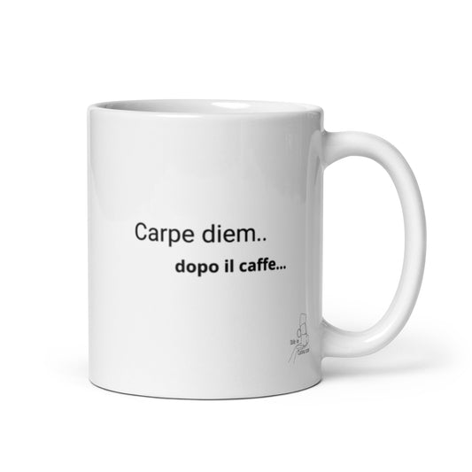 Tazza bianca lucida "Carpe diem...dopo il caffè"