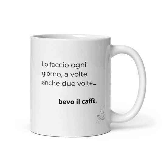 Tazza bianca lucida "Lo faccio ogni giorno, a volte anche due volte.. bevo il caffè."