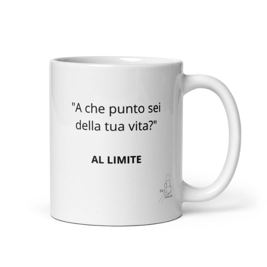 Tazza bianca lucida "A che punto sei della tua vita? Al limite”